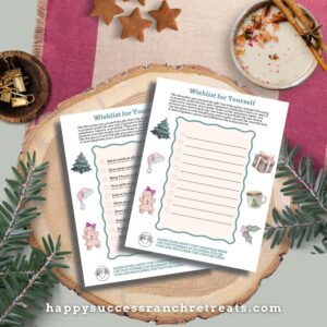 Have you ever made a Christmas wishlist… for yourself? Not the kind filled with gifts under the tree, but the kind that helps you step into a calmer, happier, more intentional December. This week at Happy Success Ranch Retreats, we’re sharing a brand new free printable to help you do exactly that. It’s a “December Wishlist for Yourself,” a simple tool to help you name what you want to give yourself this season, like more confidence, healthier habits, or getting gifts wrapped early so you can actually enjoy the month. Let this be your chance to slow down, reset, and choose what matters most for a meaningful December.